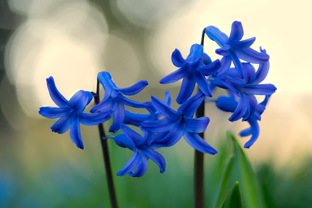 Spring is slowly arriving in my hometown Bielefeld in Germany. At the end of March there is not much growth, but the hyacinths are already blooming in our botanical garden. The three pictures of the blue hyacinth (it is the same plant) were taken early in the morning in backlight. The sunlight, which falls through the trees in the background, together with the wide open aperture provides the bright blur circles. I worked with the focus stacking technique to get the rather small blossoms sharp in front of the background. A Novoflex CASTEL-MICRO focusing rack was used for the camera movement. Fortunately it was windless, so that only a few attempts were necessary to get good raw material. All three photos are composed of 20 single shots.