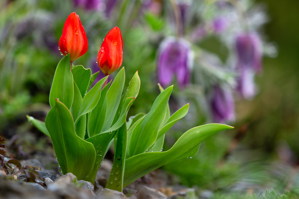 Tulips are certainly among the most popular spring flowers. They are not particularly rare, but they are still very decorative. Whether at home or - like the photo here - outdoors. I photographed the red lady tulip (Tulipa clusiana) in the Botanical Garden of Bielefeld. The second photo was taken after a rain shower.